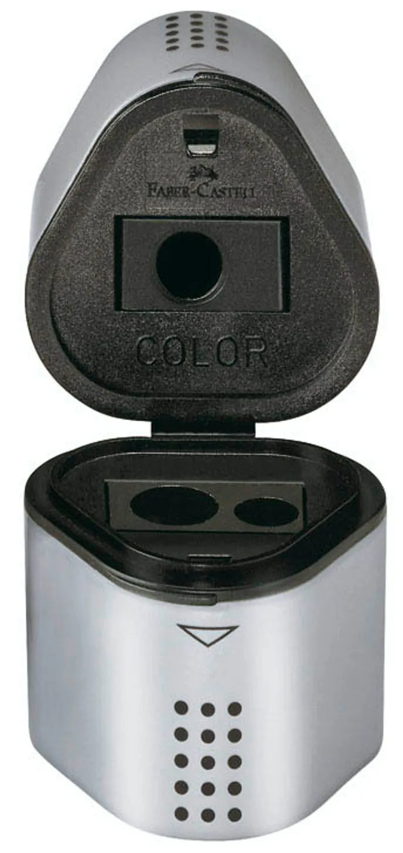 - Diese praktische Spitzdose vom Markenhersteller FABER-CASTELL bietet Ihnen gleich drei Dosenspitzer dreifach in einem und eignet sich für Jumbo-, Blei- und Farbstifte in Dreieck-, Rund- und 6-Eck-Form mit einem Durchmesser von bis 8, bis 12 mm. Mit den Maßen 4,5 x 4,5 x 6,5 cm (BxTxH) passt dieser praktische Dosenspitzer dreifach auf jeden Schreibtisch und in jede Schultasche. Denn besonders für unterwegs eignet sich die Spitzdose dank des Auffangbehälters besonders gut. Dieser lässt sich übrigens ganz schnell und einfach entleeren.