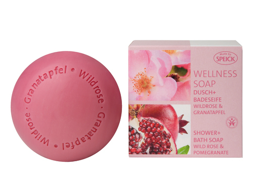 Die Wellness Soap Wildrose & Granatapfel von SPEICK ist ein Wellness-Seifentraum mit hochwertigem Granatapfel-Extrakt und pflegenden Wildrosen-Auszügen. Hergestellt nach der traditionellen Seifenrezeptur des Hauses Speick Naturkosmetik. Seit 85 Jahren „Made in Germany”.