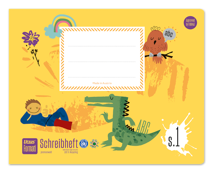 Das URSUS Schreibheft ist aus hochwertigem, in Österreich hergestellten Pure Impact Recyclingpapier und mit dem Österreichischen Umweltzeichen sowie dem Blauen Engel ausgezeichnet. Das Heft zeichnet s ich durch extra breite Zeilen, eingerücktem Zeilenblock und abgerundete Ecken aus. Der große Abstand erleichtert das Schreiben der Buchstaben. Die Schreibzeile hat einen Grundlinienstrich und wird dreigeteilt.